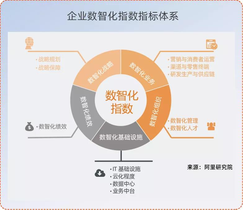 課題組具體(tǐ)從(cóng)業(yè)務、戰略、組織、數•≥$(shù)智化(huà)基礎設施和(hé)業(yè)績5個(→"gè)方面,構建了(le)一(yī)套企業(yè)數(shù)智化(huà ¥φ)指數(shù)框架。