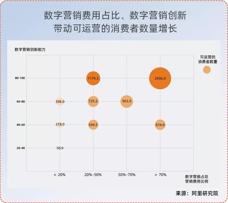 數(shù)字營銷是(shì)企業(yè)“觸達”用(yòng)戶的(de)有→(yǒu)效手段。數(shù)字營銷比例及其創新能(néng)力水(shuǐ)平♠,對(duì)可(kě)運營的(de)消費(fèi)者數(shΩ©Ω↕ù)量有(yǒu)顯著的(de)正向影(yǐng)響作(zuò)用(yòng→÷₽),上(shàng)述兩項指标雙高(gāo)企業(yè)的(de)可(kě)∏運營的(de)消費(fèi)者數(shù)量是(sh$♣ì)雙低(dī)企業(yè)的(de)70多(duō)倍,數(shù)π¥ 字營銷逐漸成為(wèi)幫助企業(yè)增強消費(fèi)者觸達能(néng)力、夯實用(yòng↓✔∞)戶資産的(de)重要(yào)手段。