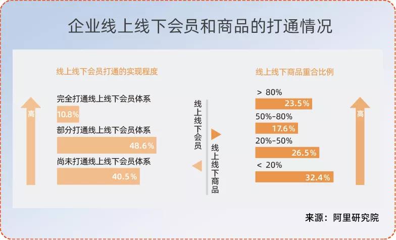 線上(shàng)線下(xià)的(de)會(huì)員(yuán)和(hé)商品體®∞(tǐ)系仍需全面打通(tōng)。會(huì)員(yuán)體(tǐ)系方面,完全¶打通(tōng)線上(shàng)線下(xià)會(huì)員(yuán)體✘★¶↓(tǐ)系的(de)企業(yè)占比僅10.8%。商品體←↔(tǐ)系方面,實現(xiàn)線上(shàng)線下(xià)同品同∞€™✔價的(de)企業(yè)僅為(wèi)23.5%。