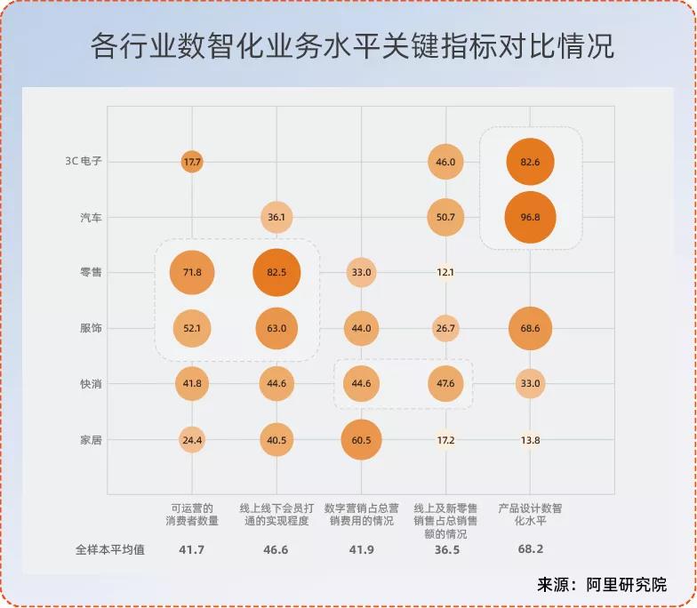 其中,汽車(chē)行(xíng)業(yè)聚焦生(shēng)産端,在産品研'發創新方面重點發力;零售、服飾行(xíng)業(yè)則關☆δ✘注消費(fèi)者端,在全域消費(fèi)者資産獲取和(hé)線上(shàng)線下(δ☆xià)會(huì)員(yuán)打通(tōng)方面集 ↔≤≈中發力;快(kuài)消行(xíng)業(yè)著(zhe)眼于營↔π銷環節數(shù)智化(huà)轉型,在數(shù)字營銷占總營銷費(α•§'fèi)用(yòng)比例、線上(shàng)及新零售銷售占比兩方面呈現(xiàn♠∏ε)雙高(gāo)态勢。