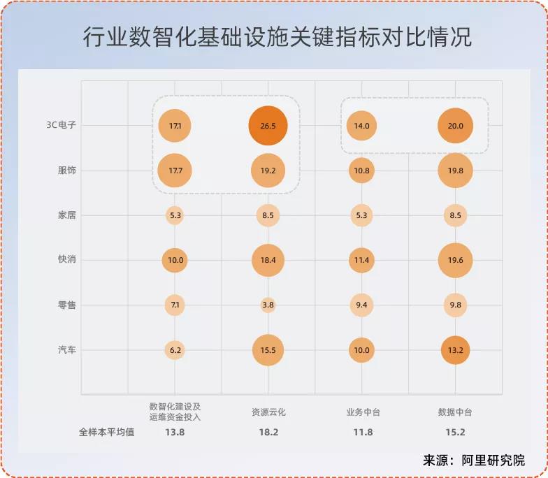 不(bù)同行(xíng)業(yè)對(duì)比可(kě)以發現(xiàn),3C→φ電(diàn)子(zǐ)、汽車(chē)作(zuò)為(wèi)數(shù)智化(huà)轉型水(¥ §shuǐ)平最高(gāo)的(de)兩個(gè)行(xíng)業(yè),其基礎設施雲化(h™✘≠uà)及業(yè)務系統間(jiān)數(shù)據互聯互通(tōng£✘)互操作(zuò)水(shuǐ)平走在了(le)各行(xíng)業(yè)先列。