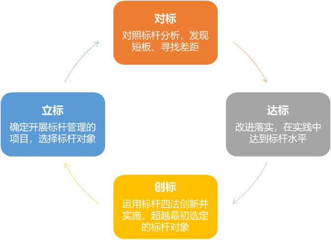 标杆管理(lǐ)又(yòu)稱“基準管理(lǐ σ)”,是(shì)以标杆對(duì)象為(wèi)基準,不(bù)斷尋求卓越與®∑α創新。标杆管理(lǐ)由立标、對(duì)标、達标、創标四個(gè)環節構成,前後 Ω銜接,形成持續改進、圍繞“創建規則”和(hé)“标準本身(shēn)”φ¶的(de)不(bù)斷上(shàng)升的(de)良性循環。