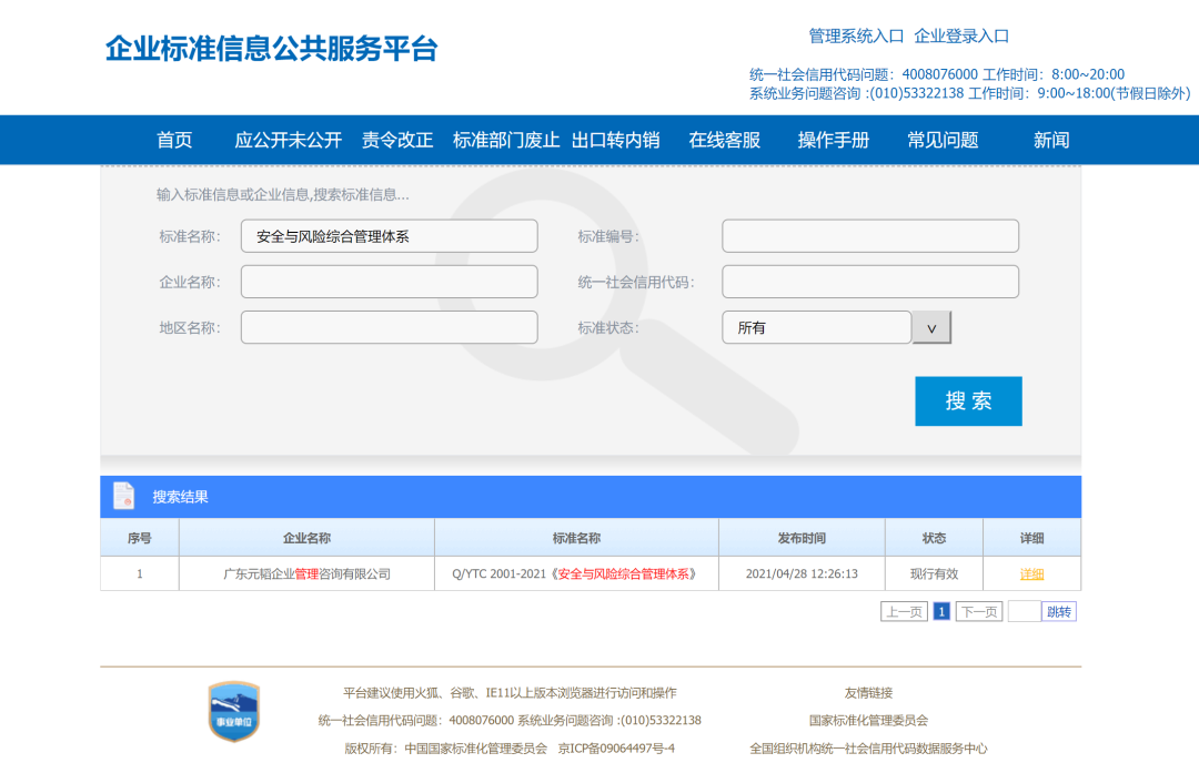 《安全與風(fēng)險綜合管理(lǐ)體(tǐ)系》可(kě)從 (cóng)企業(yè)标準信息公共服務平台中查詢和(hé)下(xià)載,相(xiàng)π 關鏈接如(rú)下(xià):