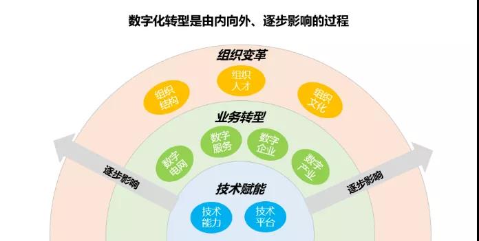 企業(yè)數(shù)字化(huà)轉型基本§α遵循“技(jì)術(shù)賦能(néng)—業(yè)務轉型—組織變革”的(de)鏈式反應規律。新一(yī)代數(shù)字技(jì)術(shù)突破必♠≈然帶來(lái)廣泛的(de)業(yè)務場(chǎng)景•£σ£應用(yòng),随著(zhe)數(shù)字技(jì)術(shù)與業(yè)務×✘"融合不(bù)斷加深,勢必對(duì)業(yè)務模式ελ與業(yè)務流程産生(shēng)深遠(yuǎn)影(yǐng)響,進而推動組織與人(ré&n)員(yuán)發生(shēng)相(xiàng)應調整,最終實現(xiàn)技Ω ₽(jì)術(shù)、業(yè)務、組織的(de)最佳協調。這(zhè)一(yī₩')規律本質上(shàng)是(shì)遵循馬克思主義“生(shēng)産力₩<₽↓決定生(shēng)産關系”的(de)基本思想。