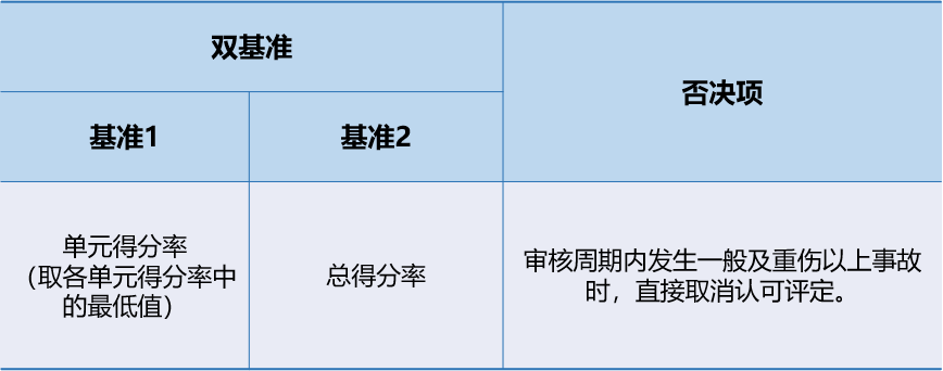 體(tǐ)系運轉的(de)整體(tǐ)績效以得(de)分(©©®fēn)率為(wèi)标準,采用(yòng)“雙基準”進行(xíng)認定,既考慮體(tǐ)系整體(tǐ)得(de)分(fēn)率,也(yěΩ→)需考慮體(tǐ)系單元得(de)分(fēn)率,同時(shí)還(hái)有(yǒ★÷ ±u)否決項。考慮體(tǐ)系單元得(de)分(fēn)率是(shì)為(wèi)促進體€$(tǐ)系建設的(de)整體(tǐ)性,避免某單元或要(yào)素建β↑設的(de)短(duǎn)闆。