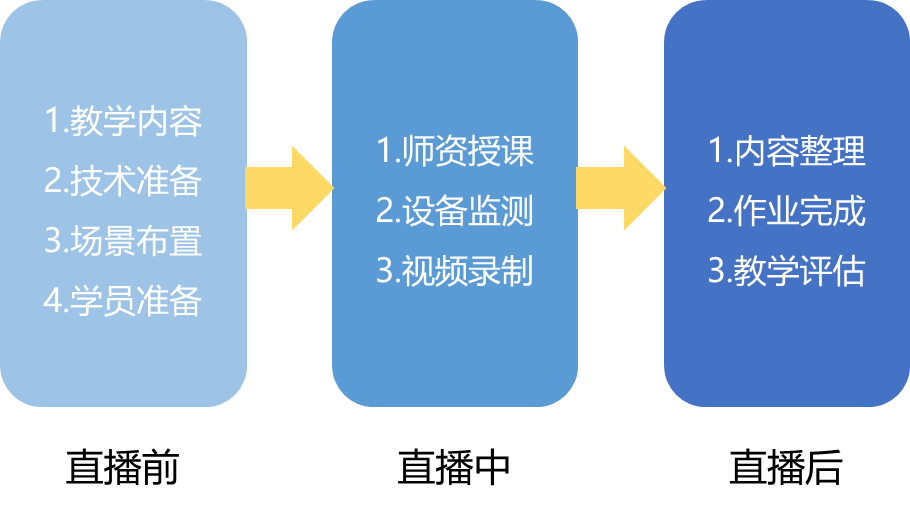 圖1:直播培訓各階段的(de)主要(yào)工(gōng)作(zuò)