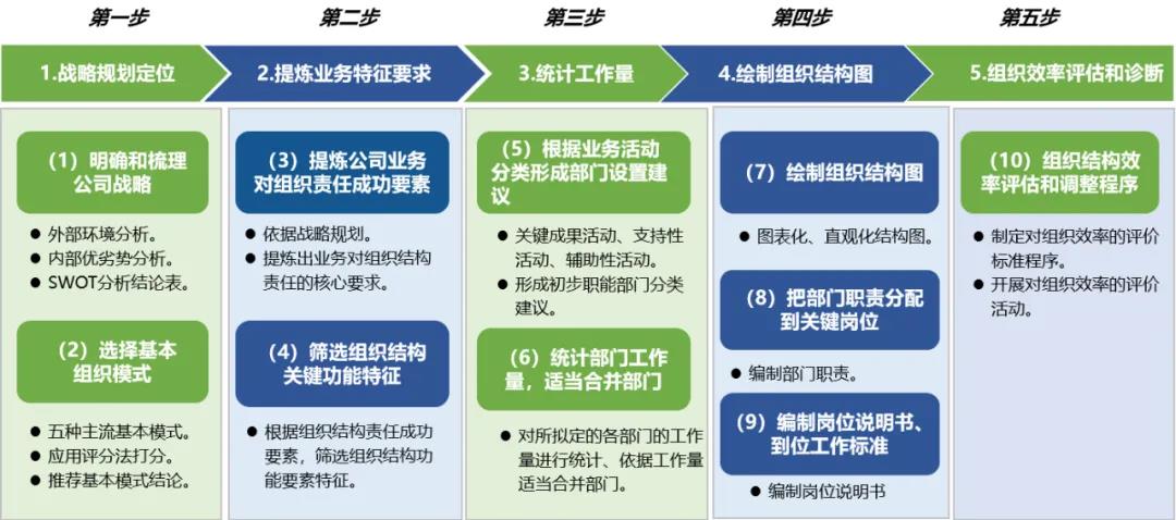 元韬咨詢公司總結多(duō)個(gè)國(guó)企¶♣組織結構變革項目的(de)實踐經驗,結合國(guó)內(nè≈₽i)外(wài)主流的(de)企業(yè)組織結構設計(jì)模型和(hé)方法論,提煉'✔¶↔形成了(le)具有(yǒu)元韬咨詢特色的(de)組織結構變革“五步法”設計(j₽∞ì)工(gōng)具。本部分(fēn)将分(fēn)享組織結構變革設計(jì)工(gōng)±≠∑具的(de)實踐技(jì)巧。