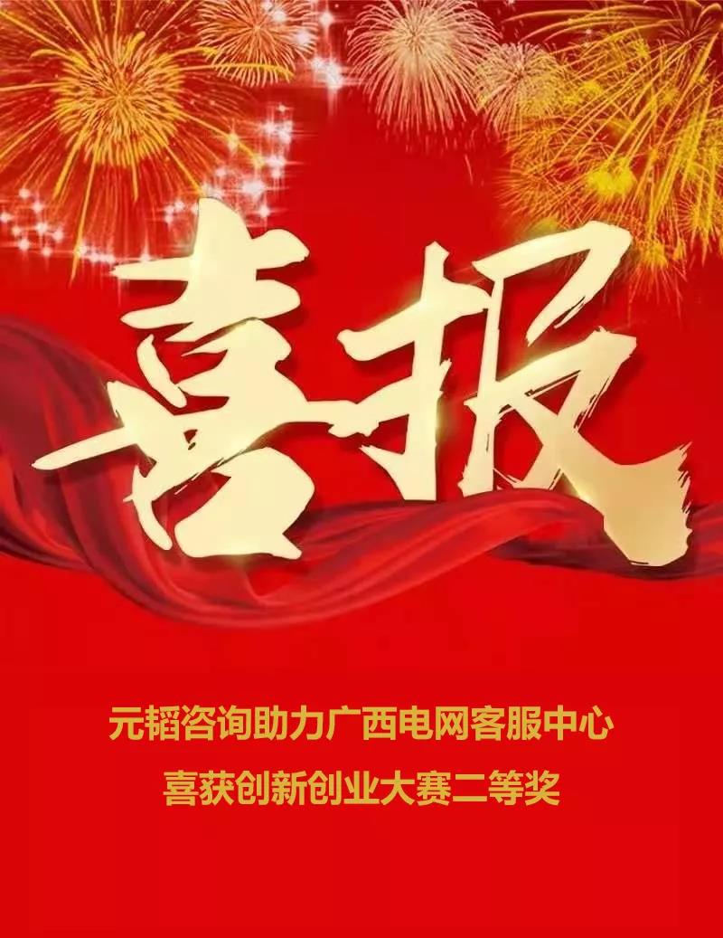2021年(nián)11月(yuè),元韬咨詢團隊協助廣西(xī)電(diàn)網ββ<客戶服務中心參加了(le)廣西(xī)電(diàn)網公司創新創業(← yè)大(dà)賽,參賽項目榮獲廣西(xī)電(diàn)網公司2021年↑←$₹(nián)創新創業(yè)大(dà)賽創意方案類項目二等獎。(排名第七)