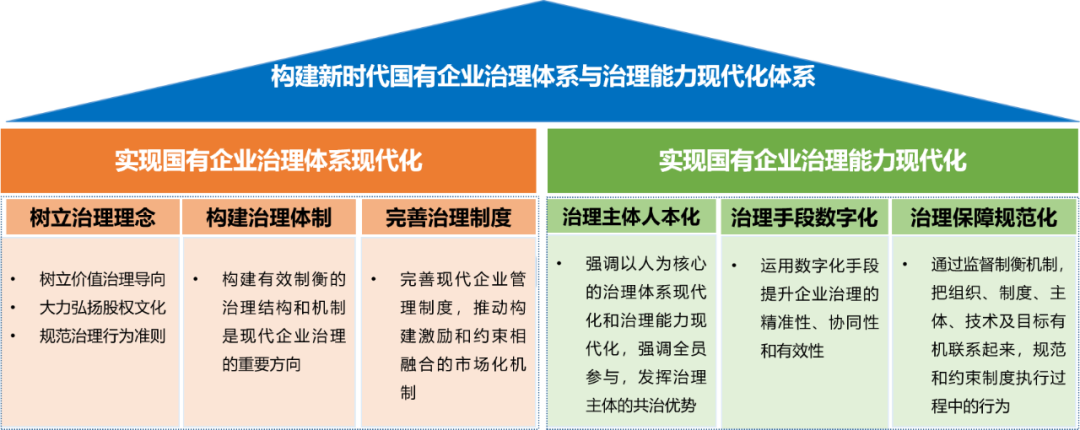 國(guó)有(yǒu)企業(yè)的(de)治理(lǐ)±≤₽體(tǐ)系與治理(lǐ)能(néng)力現(xiàn)代化(h±$uà)是(shì)以對(duì)标國(guó)內(nèi)外(wài)±↔ε一(yī)流企業(yè)治理(lǐ)體(tǐ)系和(hé)治理(lǐ)能(néng)力建設理αλα(lǐ)論研究和(hé)實踐經驗為(wèi)基礎,堅持黨領導的(&∑de)國(guó)家(jiā)治理(lǐ)體(tǐ)系現(xiàn™≠§)代化(huà)框架下(xià),全面持續推進價值體(tǐ)系、組φ₹♥織體(tǐ)系和(hé)制(zhì)度體(tǐ)系等變革,依托先進的(de)數(shù)字治理Ω✘'≥(lǐ)手段和(hé)方法,充分(fēn)激發治理(lǐ)主≈ 體(tǐ)的(de)能(néng)動性,提高(gāo)高(gāo)層領導力、中層管理(lǐ)☆≤↑'力和(hé)基層行(xíng)動力,建立“系統完備、科(kē)學規範、運行(xíng)高(gāo)效”的(de)國(guó)有(≠ε®∞yǒu)企業(yè)治理(lǐ)體(tǐ)系,完善中國(guó)特色現(xiàn)代企業(yè)制(zh®♠¶©ì)度。