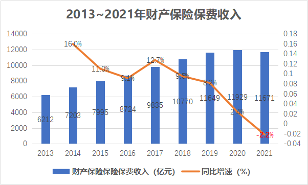 圖:2013-2021年(nián)财産保險保費(fèi)收入