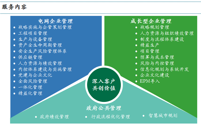 元韬公司通(tōng)過融合“國(guó)際化(huà)”視(shì)野、♠✔↓“本土(tǔ)化(huà)”實踐、“體(tǐ)系化(huà)”方法,為(wèi)電(diàn)網¶∑• 企業(yè)、成長(cháng)型企業(yè)及政府公共管理(lǐ)提供定制(zhì)化(h©¶uà)、實效性服務,深入客戶、共創價值。