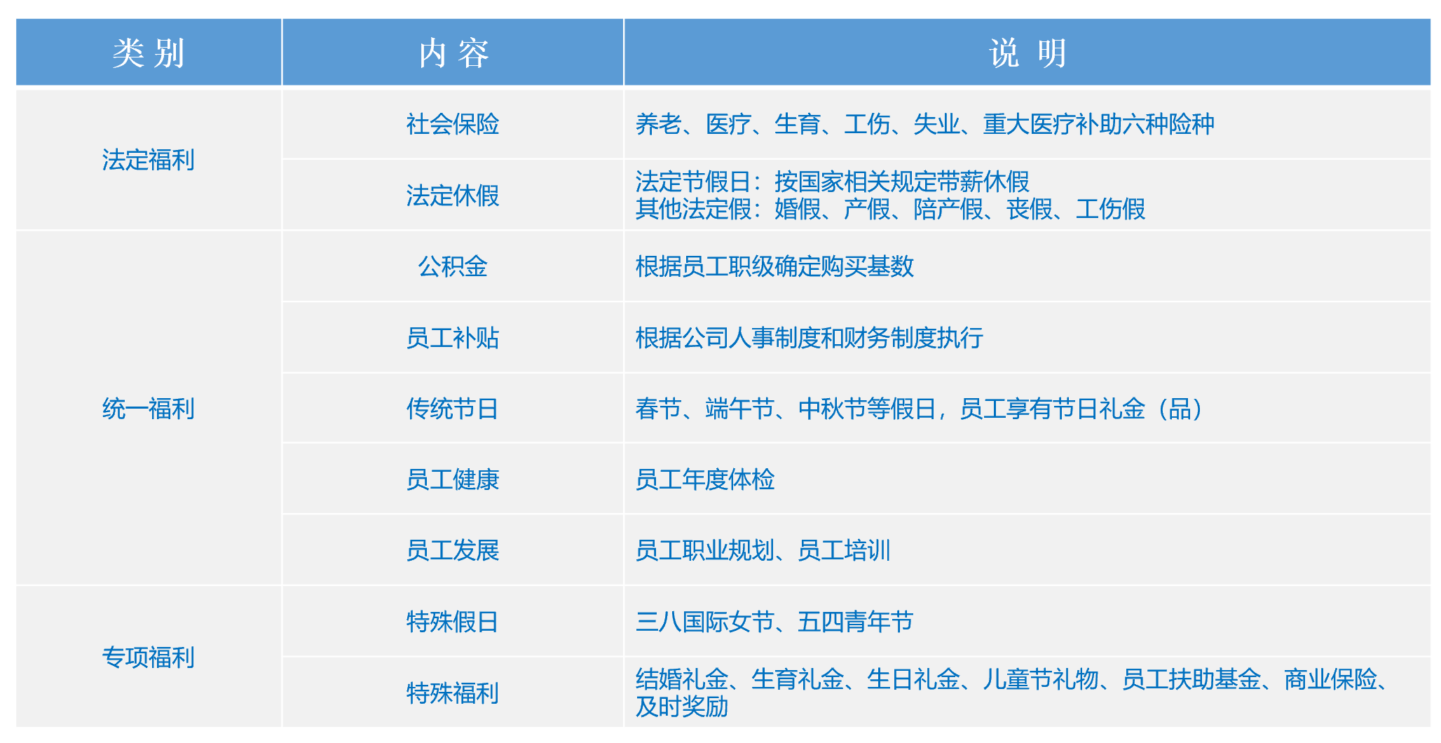 為(wèi)吸引和(hé)留住優秀人(rén)才,同時(shí)增強員✔∑©≤(yuán)工(gōng)的(de)集體(tǐ)歸屬感,以及形成良好(hǎ≤>o)的(de)企業(yè)向心力和(hé)凝聚力,公司為(wèi)員(yuán)工(gōng) ₹±提供優良的(de)福利。